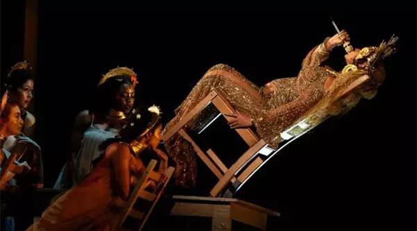 高光方面,除了用刚才粉底中用到的金色高光乳,还加入了金色的眼影,使光泽感更加强烈,才能打造舞台效果。